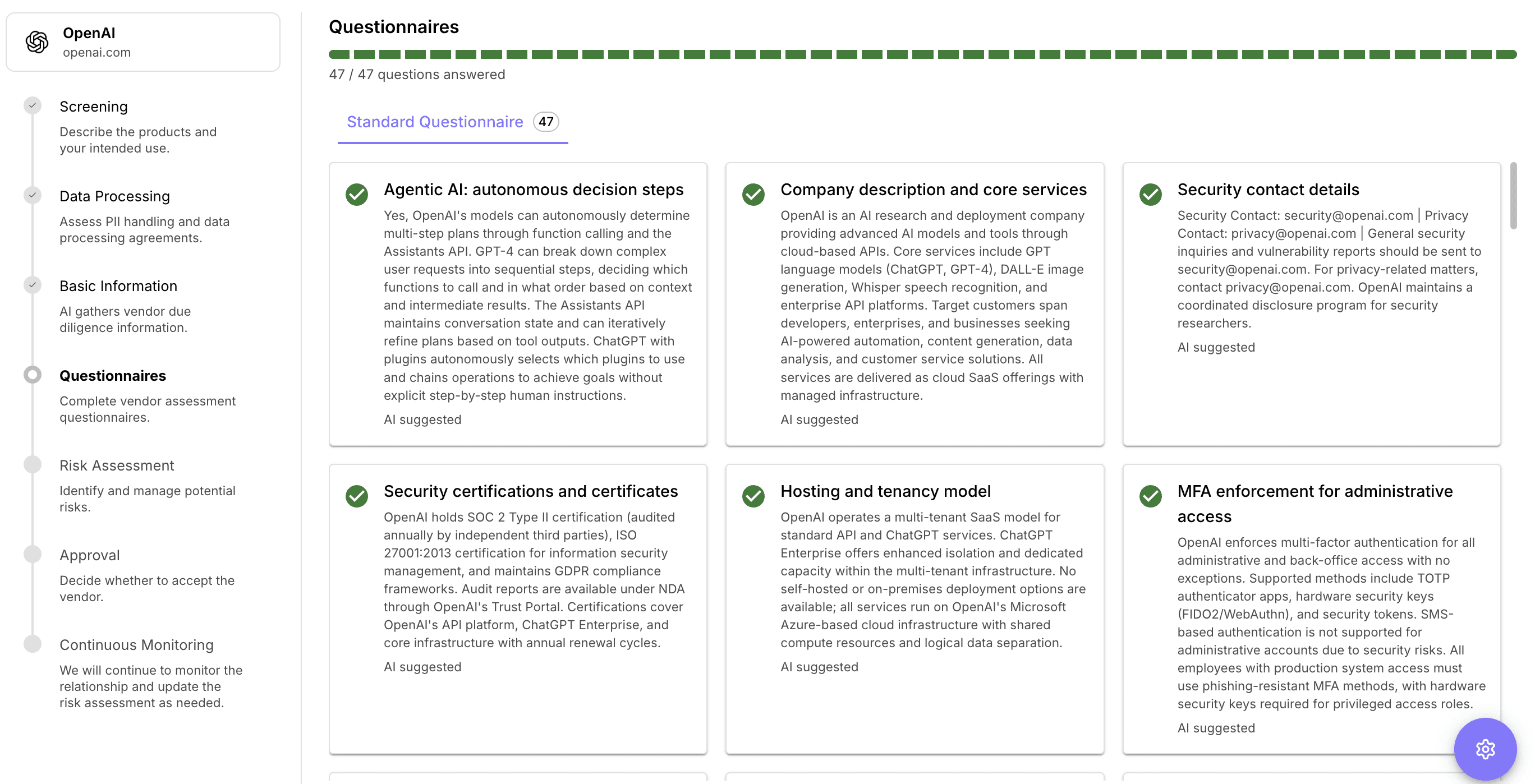 Our agents follow up, coordinate, and summarize the contextually relevant information needed to streamline vendor security reviews & risk assessment work